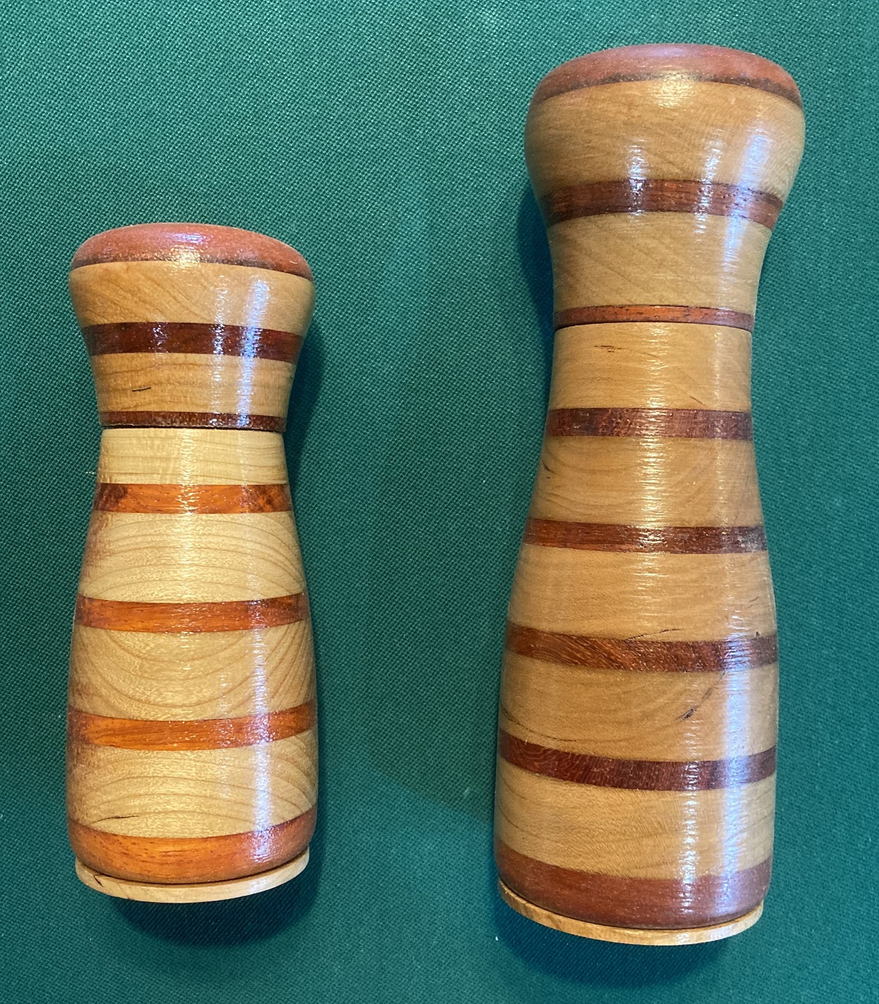 Stacked Cherry and Padauk Salt and Pepper Mills